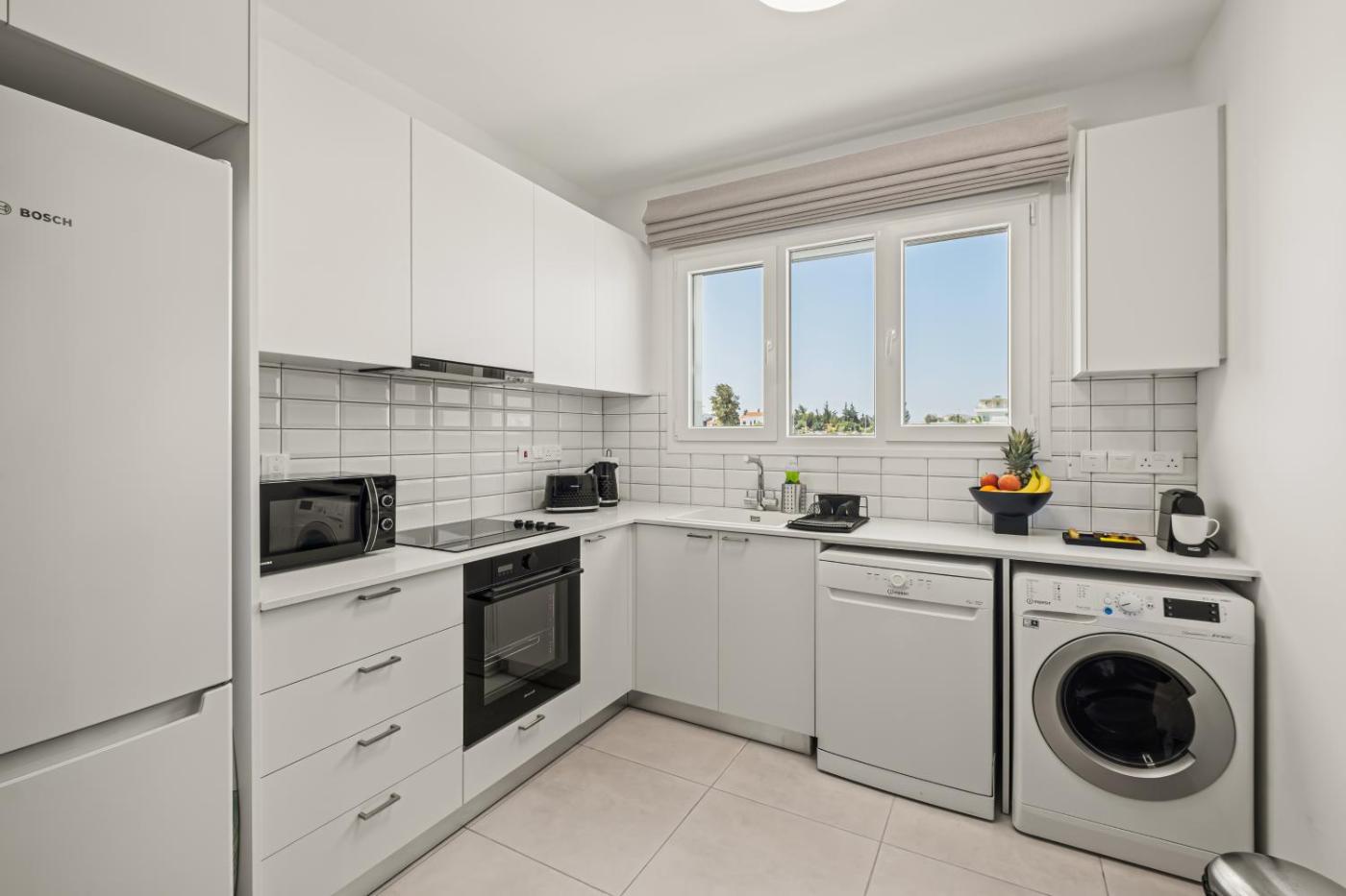 Two-Bedroom Apartment with Garden View. This spacious apartment comprises 1 living room, 2 separate bedrooms and 2 bathrooms with a shower and free toiletries. The well-equipped kitchen features a stovetop, a refrigerator, a dishwasher and kitchenware. The air-conditioned apartment provides a flat-screen TV, a washing machine, a private entrance, a tea and coffee maker as well as garden views. The unit offers 2 beds.