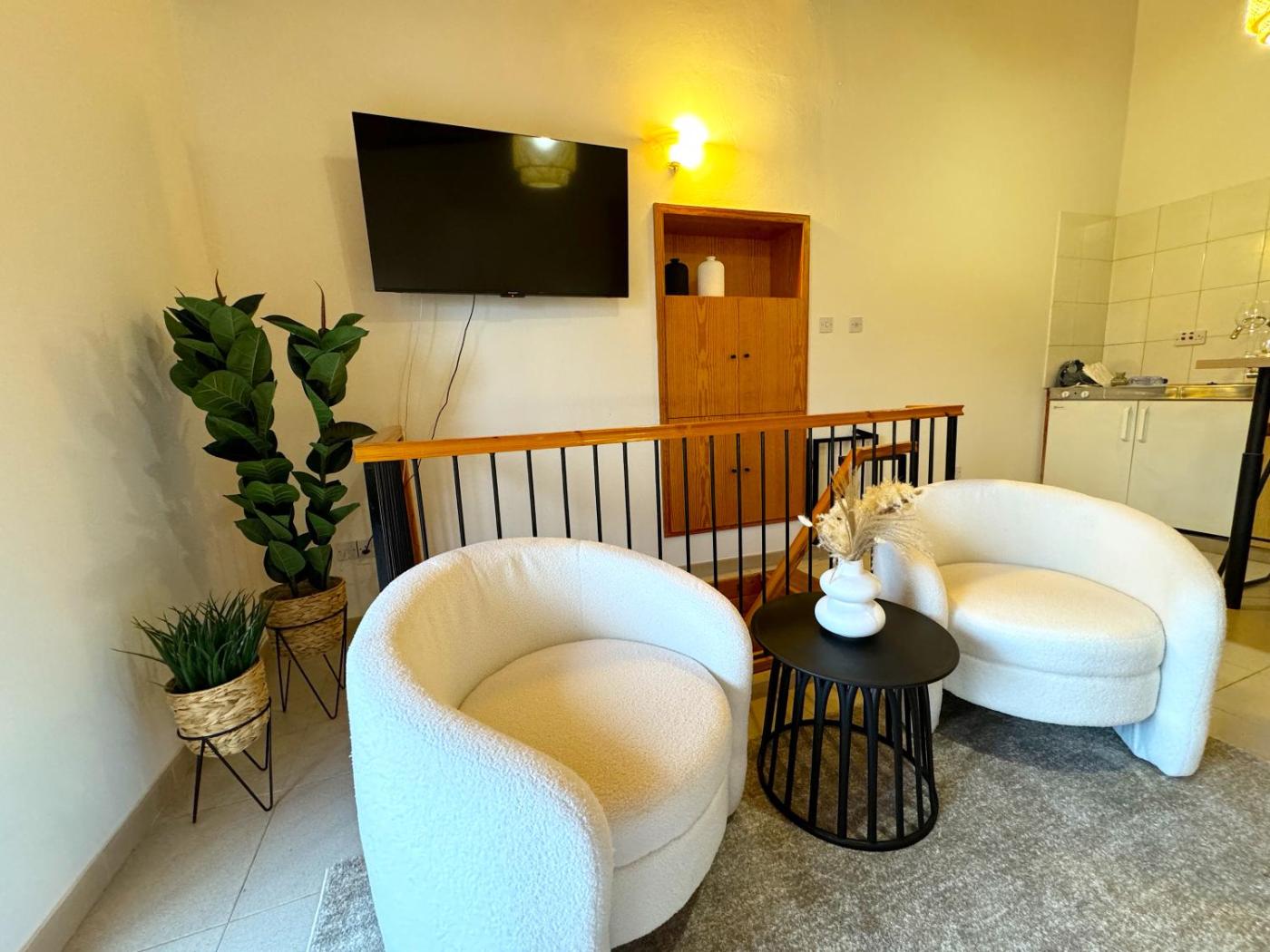 Loft. This air-conditioned apartment consists of 1 living room, 1 separate bedroom and 1 bathroom with a hairdryer. The apartments kitchen is available for cooking and storing food. This apartment provides a flat-screen TV. The unit offers 1 bed.