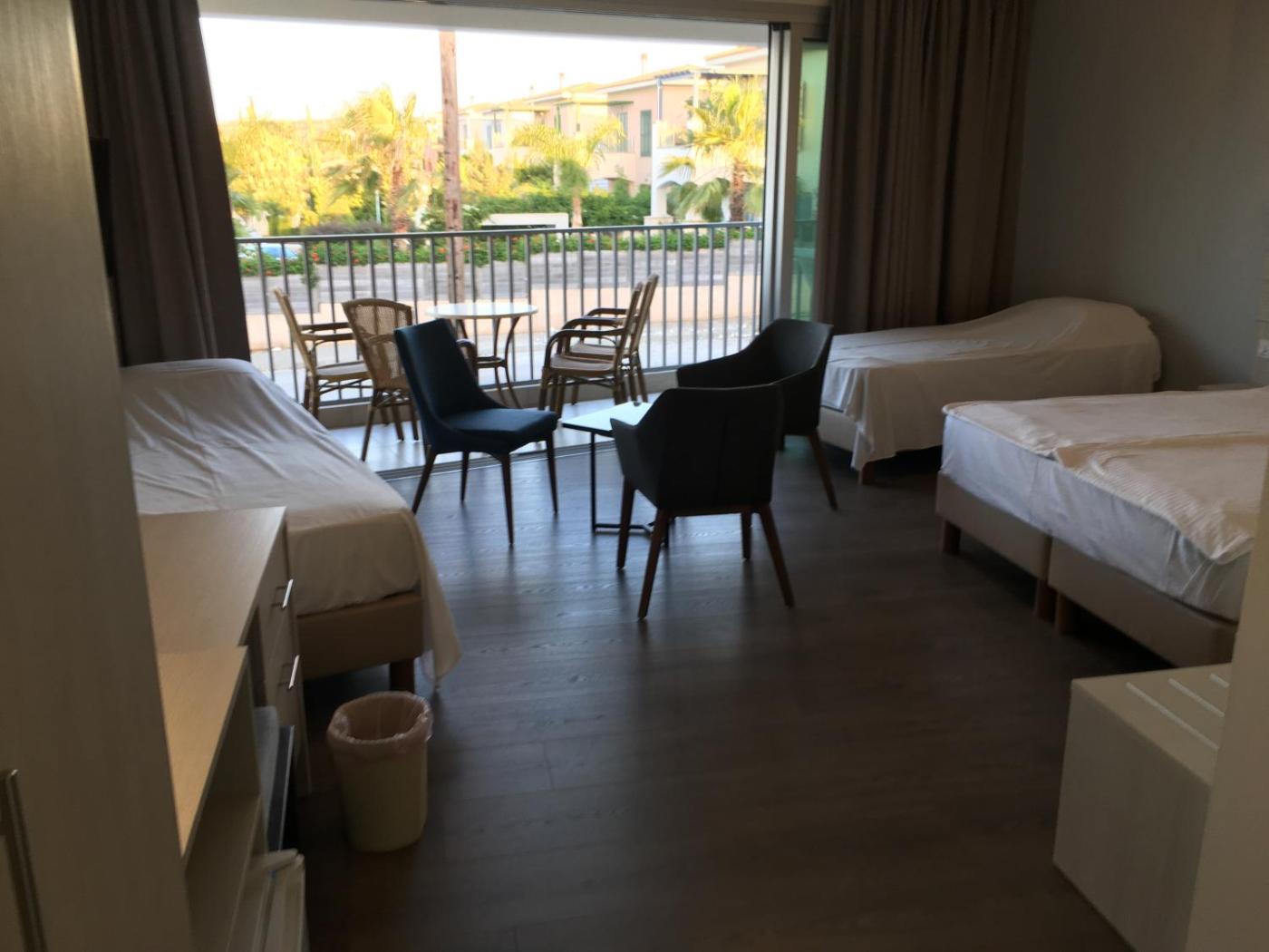 Double or Twin Room with Side Sea View. Just 50 metres from Yiannakis Beach this air-conditioned room offers a balcony with side views of the Mediterranean Sea. A satellite TV is included inrooms at the Aphrodite Beach Hotel. Free electric kettle, hairdryer and fridge can be provided upon request. ;