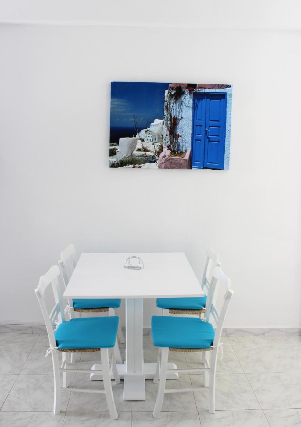 A kitchenette with cooking facilities, fridge and dining area is included inapartments at the Flokkas. Each has a seating area and a TV.